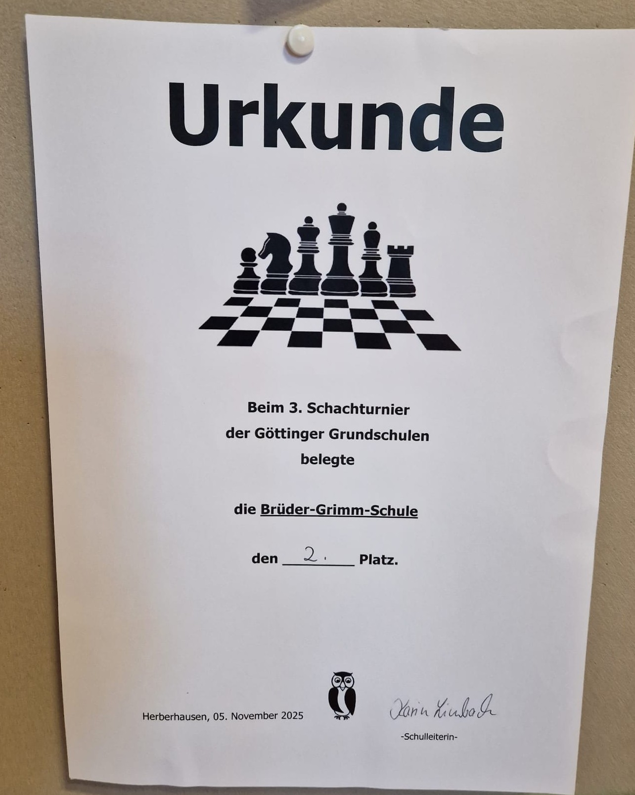 Nachdem wir im letzten Jahr den vierten Platz erreicht haben, erreichten wir in diesem Jahr einen wohlverdienten zweiten Platz beim Schachturnier in Herberhausen. Vielen Dank an alle Kinder für ein spannendes und faires Schachturnier.